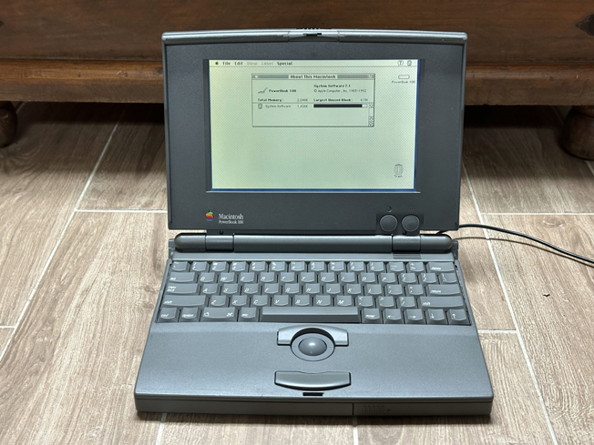 The PowerBook 100 is often considered Apple's first laptop, however, it was actually one of three. The 100, 140 and 170 were all introduced at the same time. The reason the 100 differs from the others so much is because it was largely designed for Apple by Sony, being based on the hardware design of the Macintosh Portable. It was one of Apple's last products to use the original Motorola 68000 processor, and was the only PowerBook to have one.