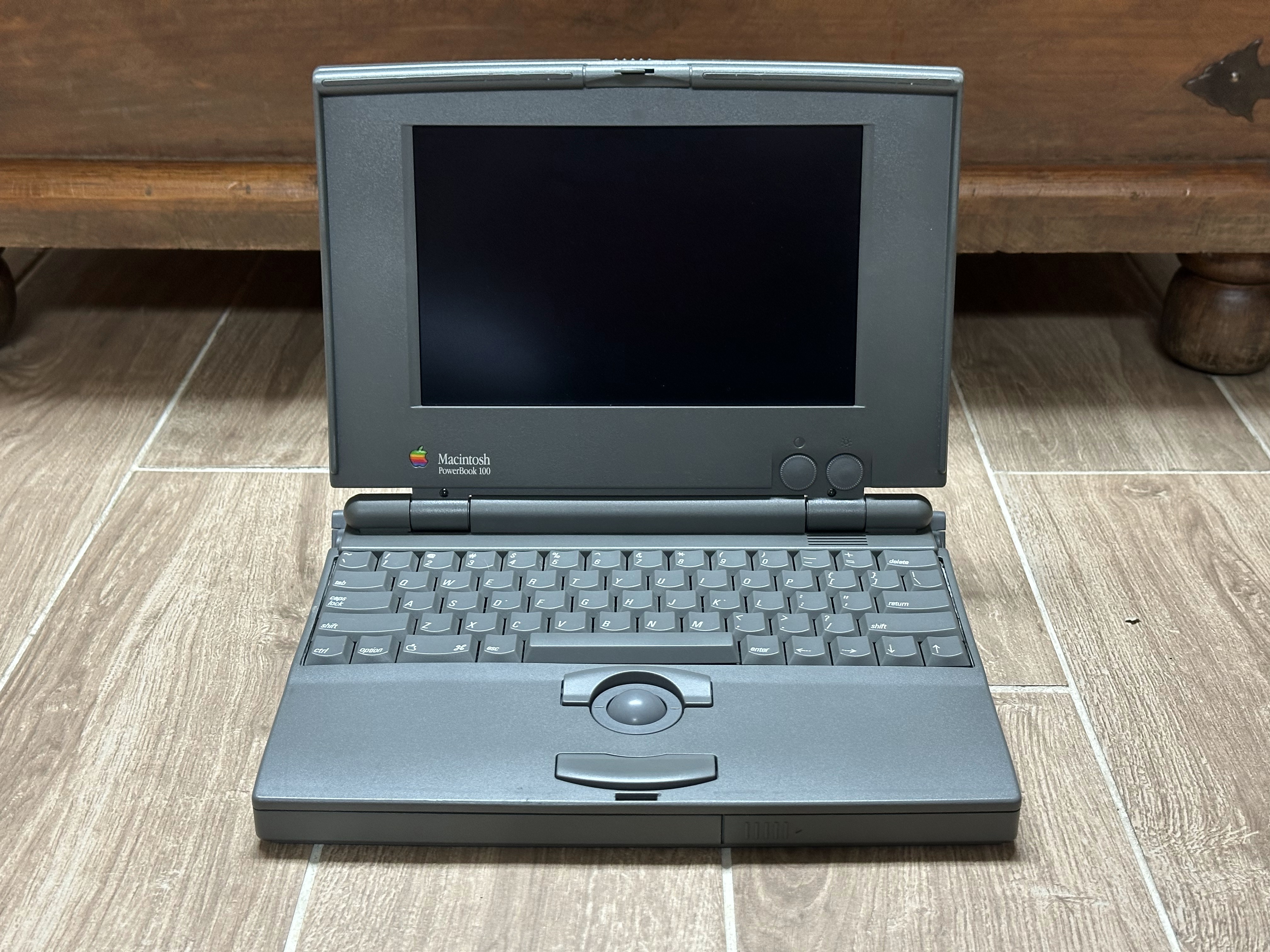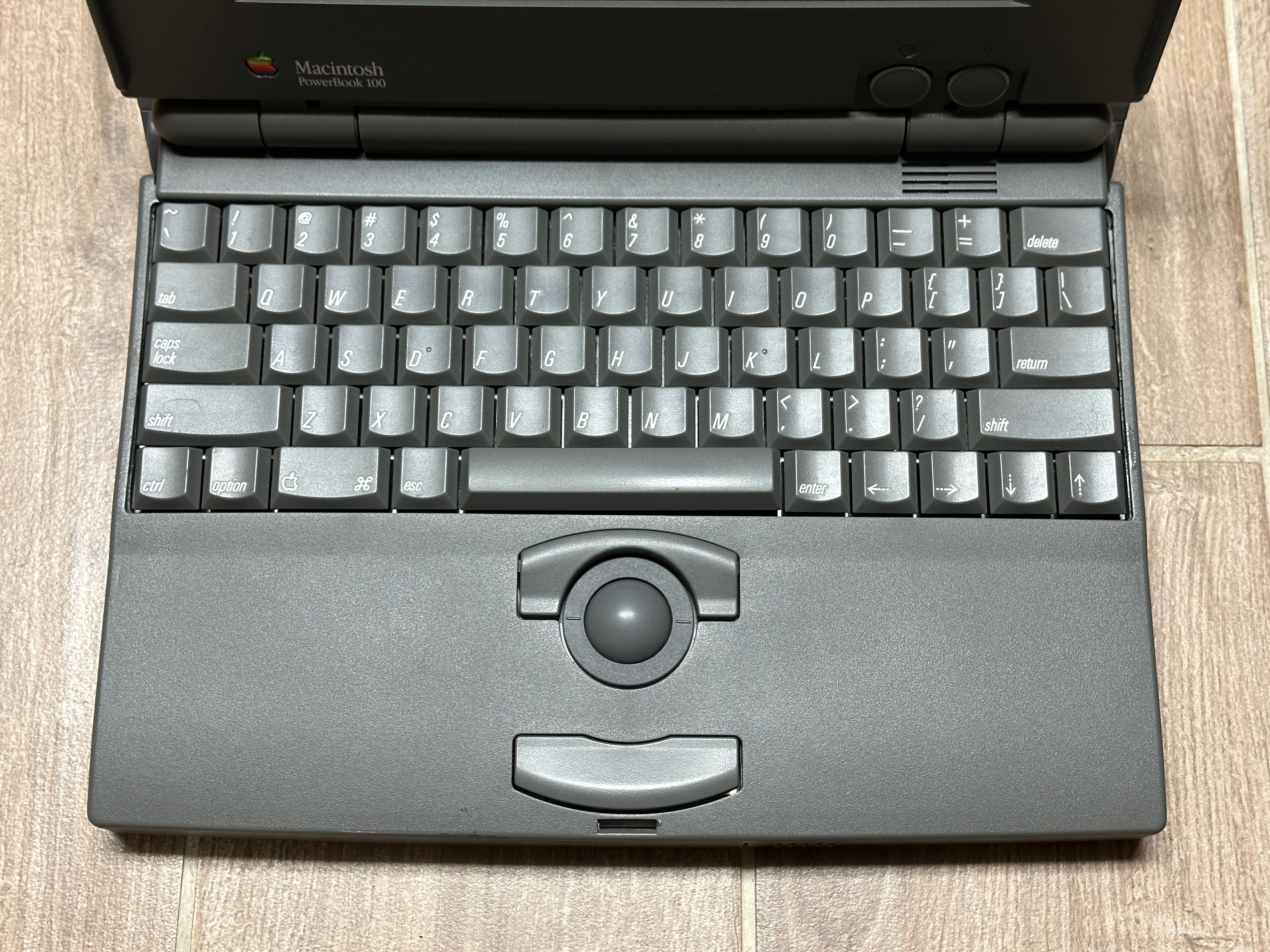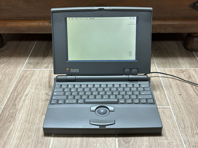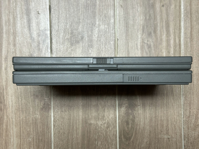 The PowerBook 100's plastic predates the brittle plastic plague of the 1990s, and is still very solid. It isn't as strong as it was when new, but you won't ever see one of these with a busted hinge.